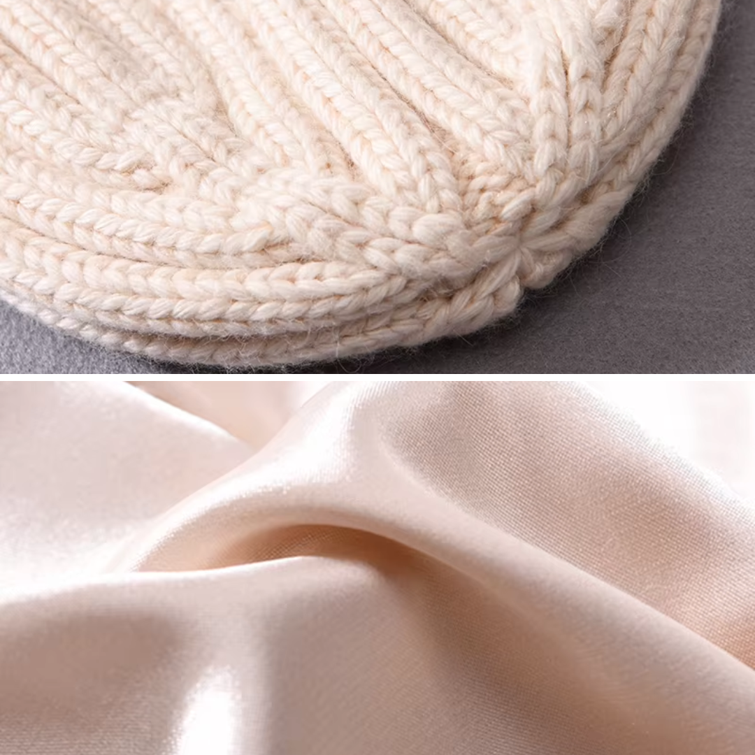 Les gens confondent souvent la soie et le satin, car ces deux matières sont brillantes et douces pour les cheveux. Cependant, le satin est fortement recommandé en raison de ses fibres naturelles de protéines qui aident à retenir l’hydratation naturelle des cheveux. Le satin est également respirant, contrairement à la soie. La soie n’est pas respirante et peut provoquer un cuir chevelu moite.