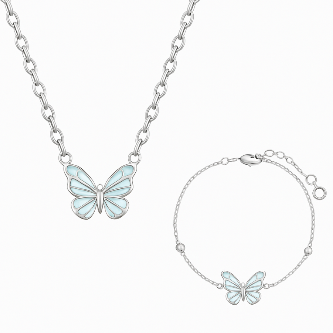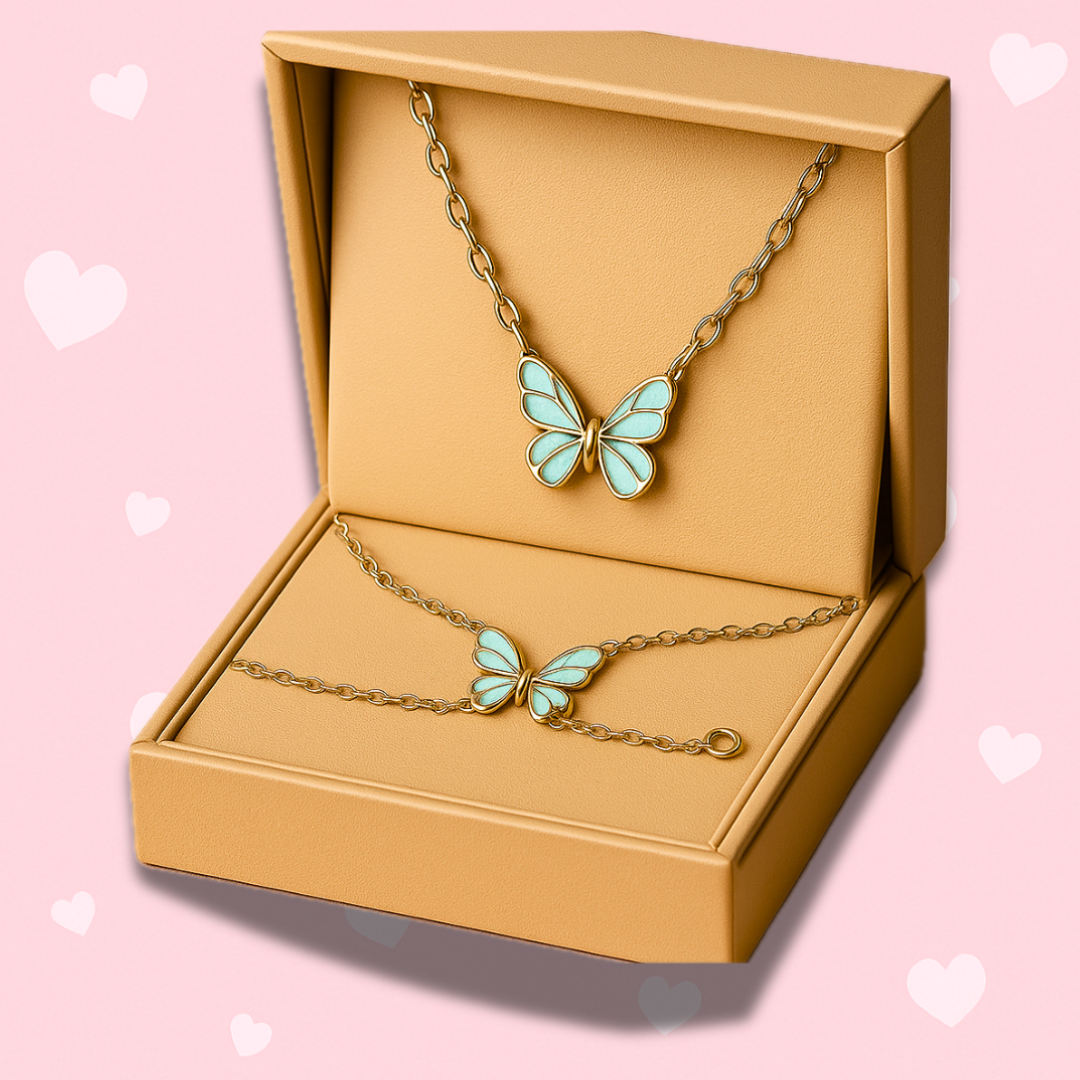 Offrir un bijou, c’est offrir un symbole. Avec LunaFly™, c’est bien plus : ce collier papillon lumineux et son bracelet assorti capturent la lumière du jour… pour briller doucement dans l’obscurité. Un effet magique, discret et élégant à la fois.