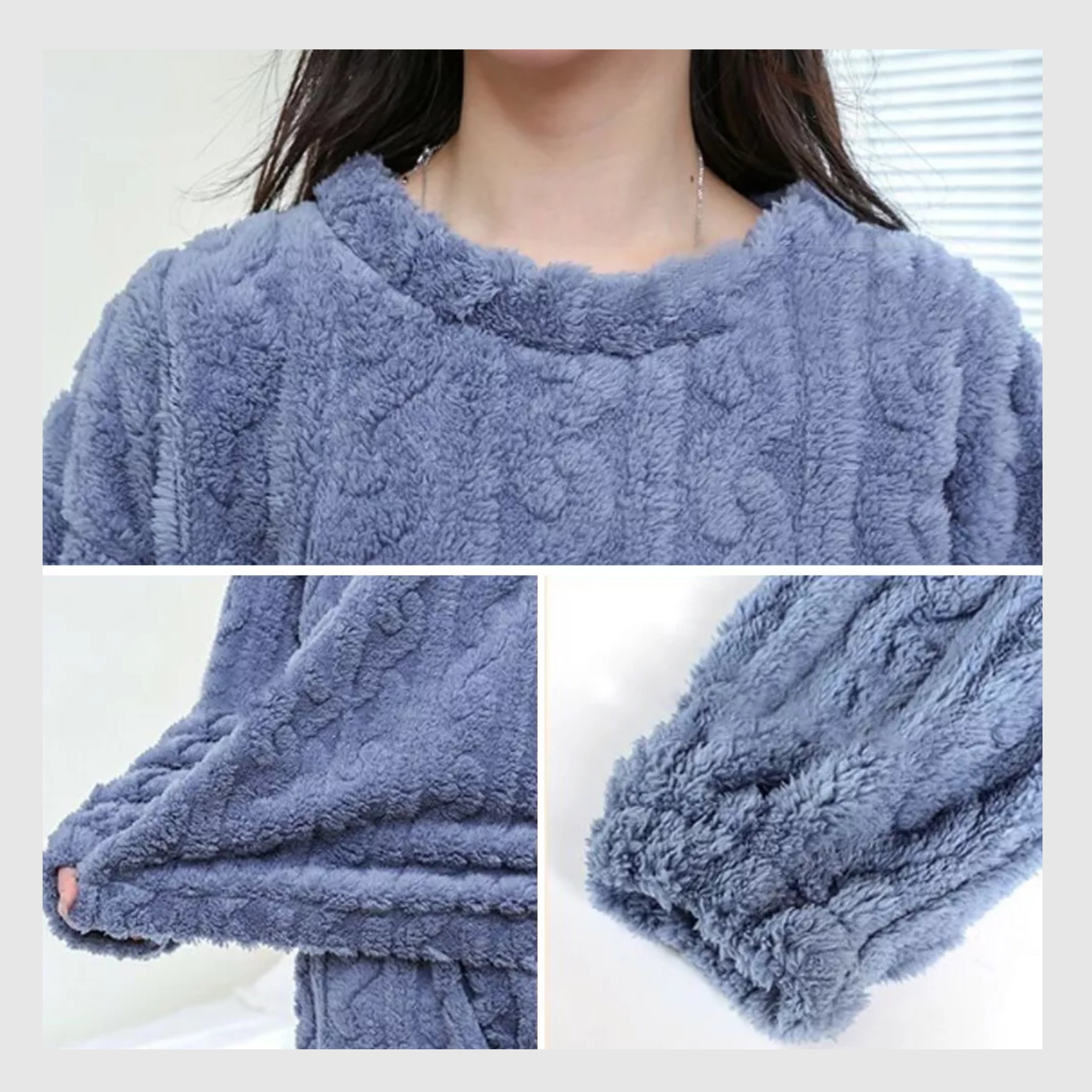L'épaisseur supplémentaire du tissu renforce la chaleur, ce qui fait de ce pyjama un choix idéal pour les températures basses. En plus de retenir efficacement la chaleur, il offre une finition lisse et veloutée pour un confort maximal, que ce soit pour se détendre ou dormir.