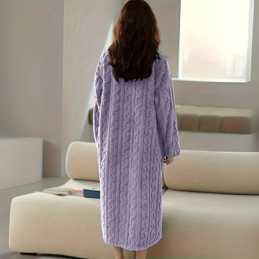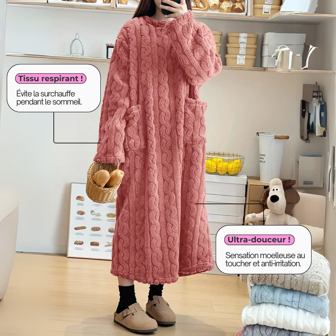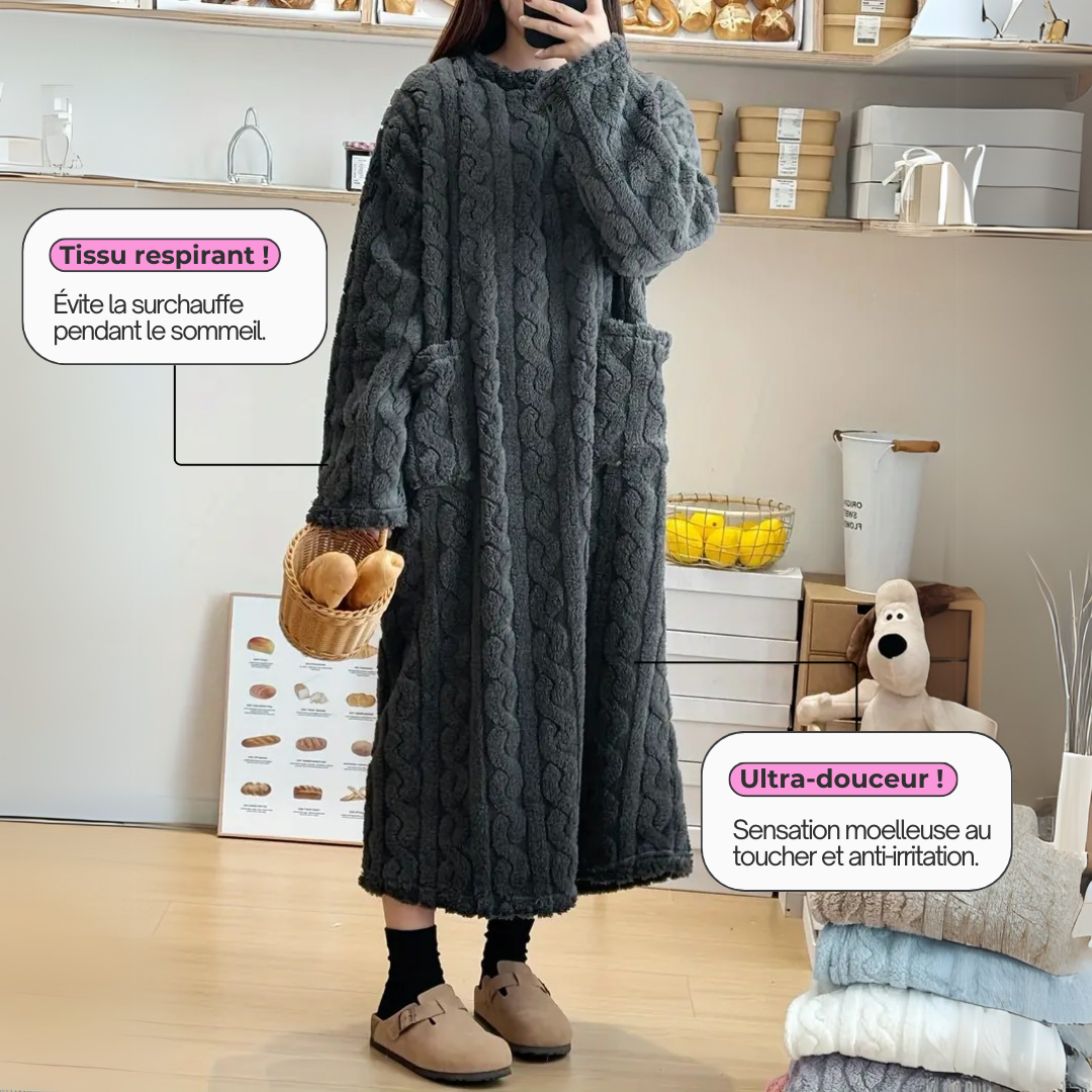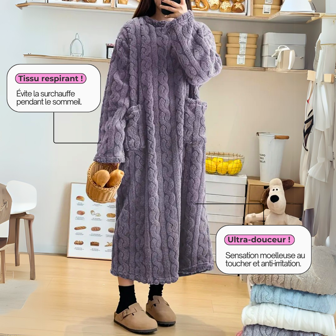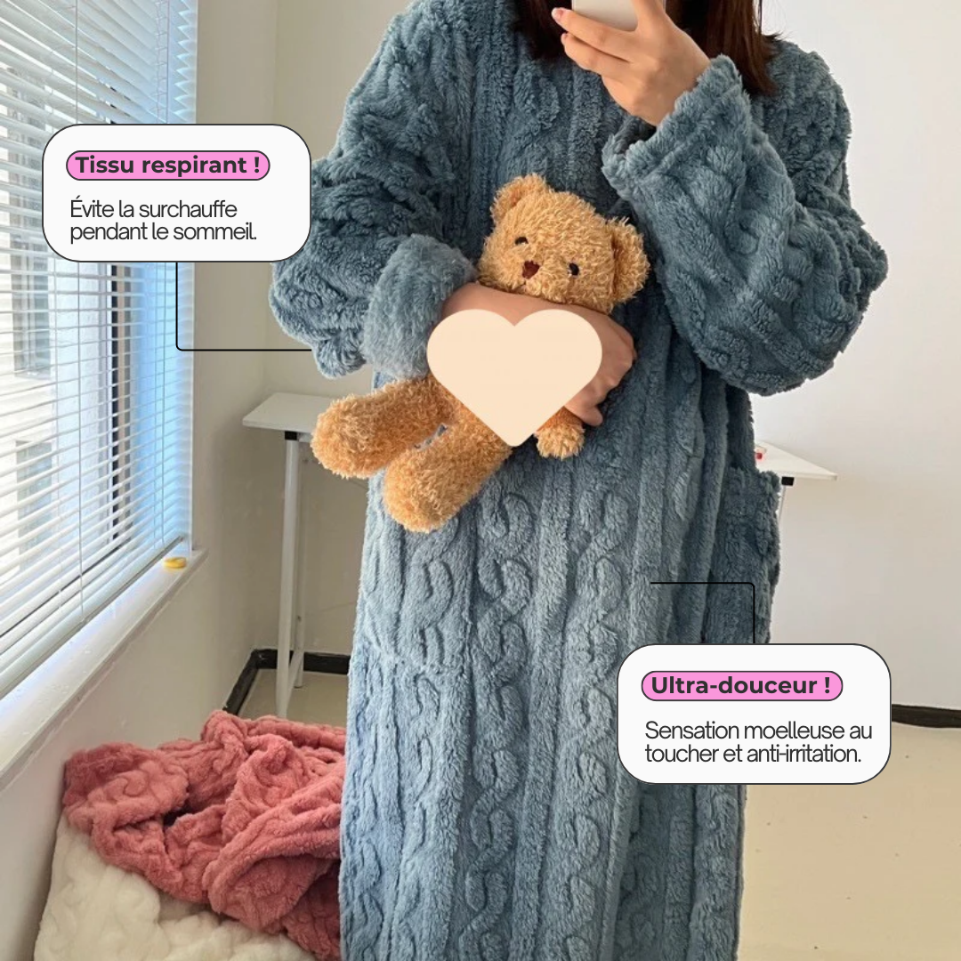 Notre robe de nuit est disponible en plusieurs couleurs élégantes, vous permettant de choisir la teinte parfaite qui correspond à votre style tout en restant confortable et chaud cet hiver.