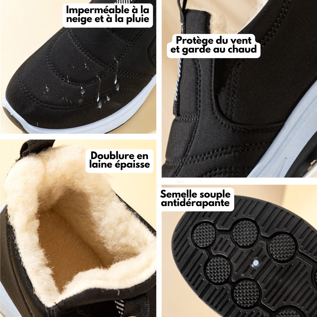 • Doublure ultra-chaude : Profitez d’une doublure en fausse fourrure douce et isolante pour garder vos pieds bien au chaud, même pendant les journées les plus froides.