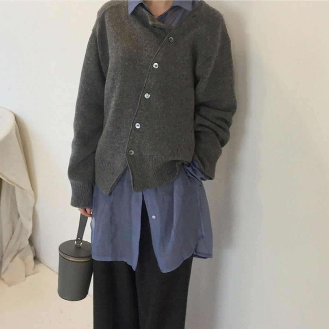 Este cárdigan ofrece una suavidad y calidez incomparables, perfecto para tu uso diario. Con sus botones asimétricos y su efecto de capas, añade un toque de elegancia casual a todos tus outfits. Ya sea para una velada acogedora en casa o para añadir un toque de estilo a tu look, este cárdigan combina comodidad y refinamiento. Disponible en varios colores para adaptarse a todos tus deseos.