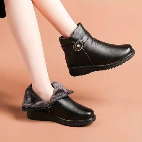 Consigue un look moderno sin comprometer tu comodidad con los botines peludos Freya™.