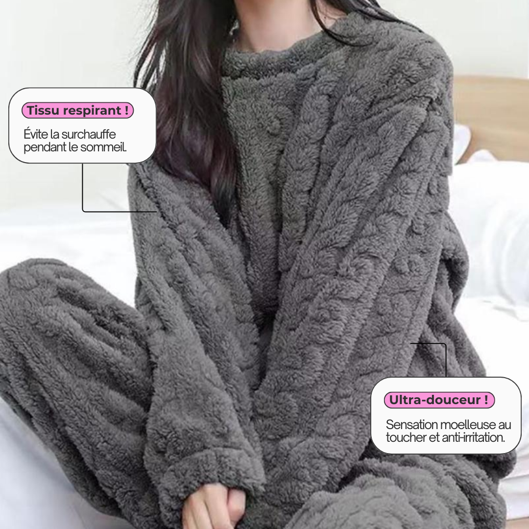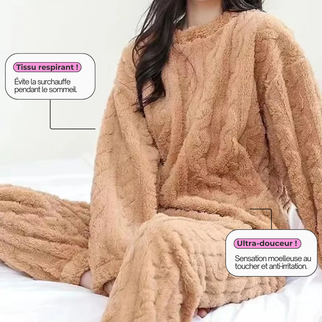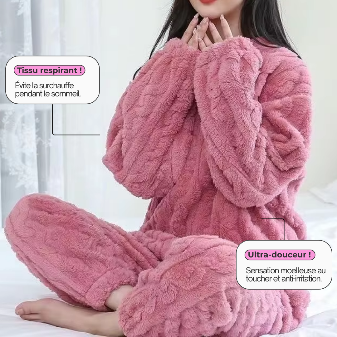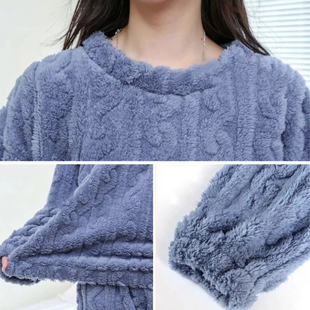 Ponte este pijama y siente la sensación de estar envuelto que solo el terciopelo ártico engrosado puede ofrecer. Como un capullo suave y reconfortante, te envuelve en una calidez relajante, ideal para las frías noches de otoño . y el invierno . Cada fibra de este lujoso tejido está diseñada para proporcionar una dulce y uno comodidad inigualable, creando la impresión de estar delicadamente envuelto en un nube de calor EL terciopelo grueso abraza tu cuerpo mientras permite una Libertad de movimiento , haciendo de estos pijamas la elección perfecta para que usted pueda relajarse, descansar y conciliar el sueño con total comodidad.