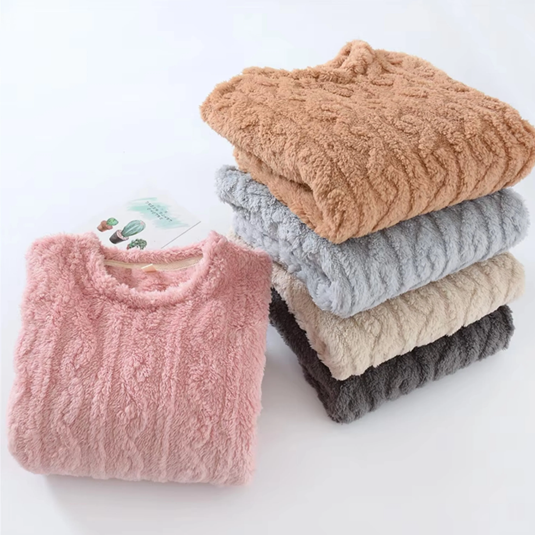 ¡Aprovecha al máximo tu invierno con nuestro conjunto de pijama de terciopelo coral! Cómodo y acogedor, te envuelve en calidez para momentos perfectos de relax durante los meses fríos.