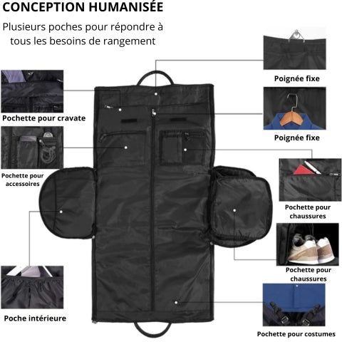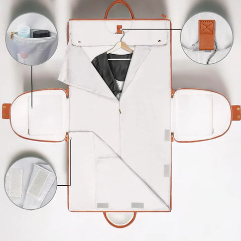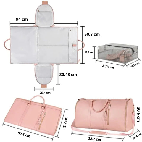 Nuestro bolso se puede utilizar como un gran bolso de viaje para ocasiones especiales como vacaciones, bodas o cualquier ocasión en la que desees llevar contigo tus mejores atuendos. Dentro de nuestro bolso hay varias formas de asegurar tu ropa en su posición antes de doblarla para viajar.