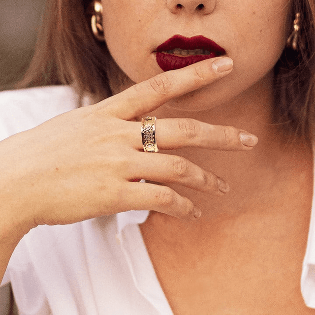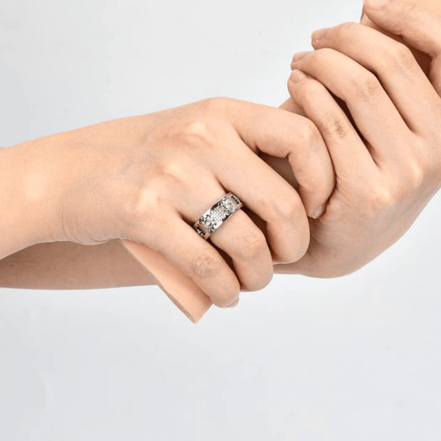 El anillo giratorio es simple y elegante , y puedes usarlo con cualquier atuendo . También puedes usarlo para ocasiones especiales .