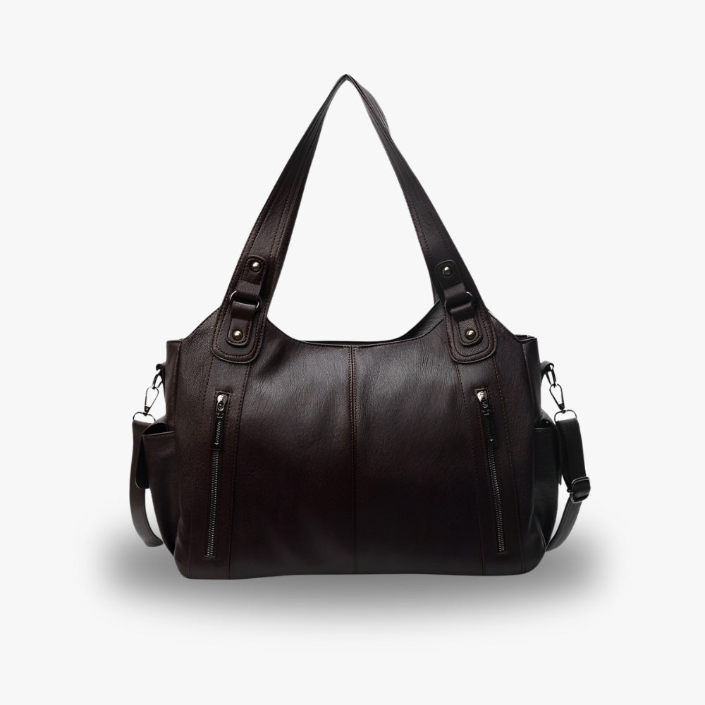 “Vera” es el bolso perfecto para combinar estilo y funcionalidad en el día a día. Fabricado con materiales veganos de primera calidad, este bolso impresiona por su diseño refinado y su capacidad para satisfacer sus necesidades de organización. Con sus dos compartimentos espaciosos y forrados, puedes llevar fácilmente tus objetos esenciales, como tu iPad, tu billetera, tus productos de belleza o tu paraguas. Con sus bolsillos laterales e internos, una correa de hombro ajustable y asas resistentes, "Vera" ofrece una comodidad óptima y una organización impecable. Ya sea para una jornada de trabajo, un viaje o una salida casual, "Vera" siempre estará a tu lado con elegancia.